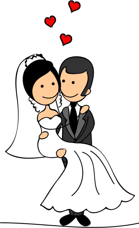 Cartoon Wedding Groom Bride Hug 4